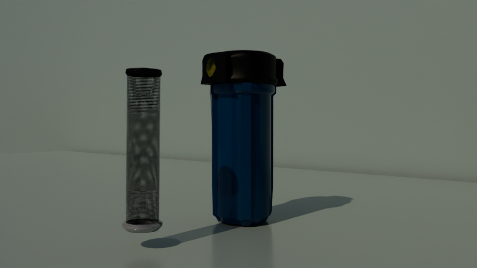 After the filter, I moved onto creating the full demonstration- the filter would go into the capsule, then the capsule would attach to an osmosis powered system connected to a water tank. I modeled everything first, then added texturing and lighting, and then rendered the animation.