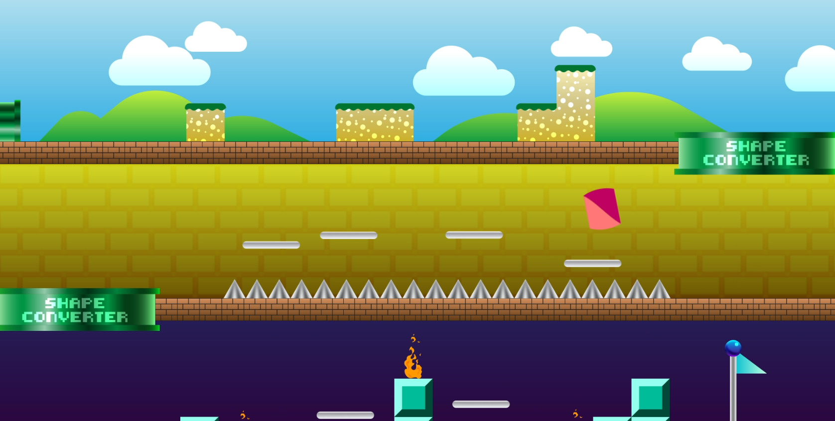 After going back into the scene, I began tweaking key frames to try to make the shape movements flow more. I then had the idea to use a liquify and distortion effect to help give personality, and help emphasize when the shapes would jump. The effect also helped exaggerate the landing and squash and the movement of the shapes as it jumped/fell back down to the platforms. I also continued to tweak jumping movements, null animations, and overall tweaking the scene to be better, more expressive, and more fluid as opposed to the rigidness it had before.