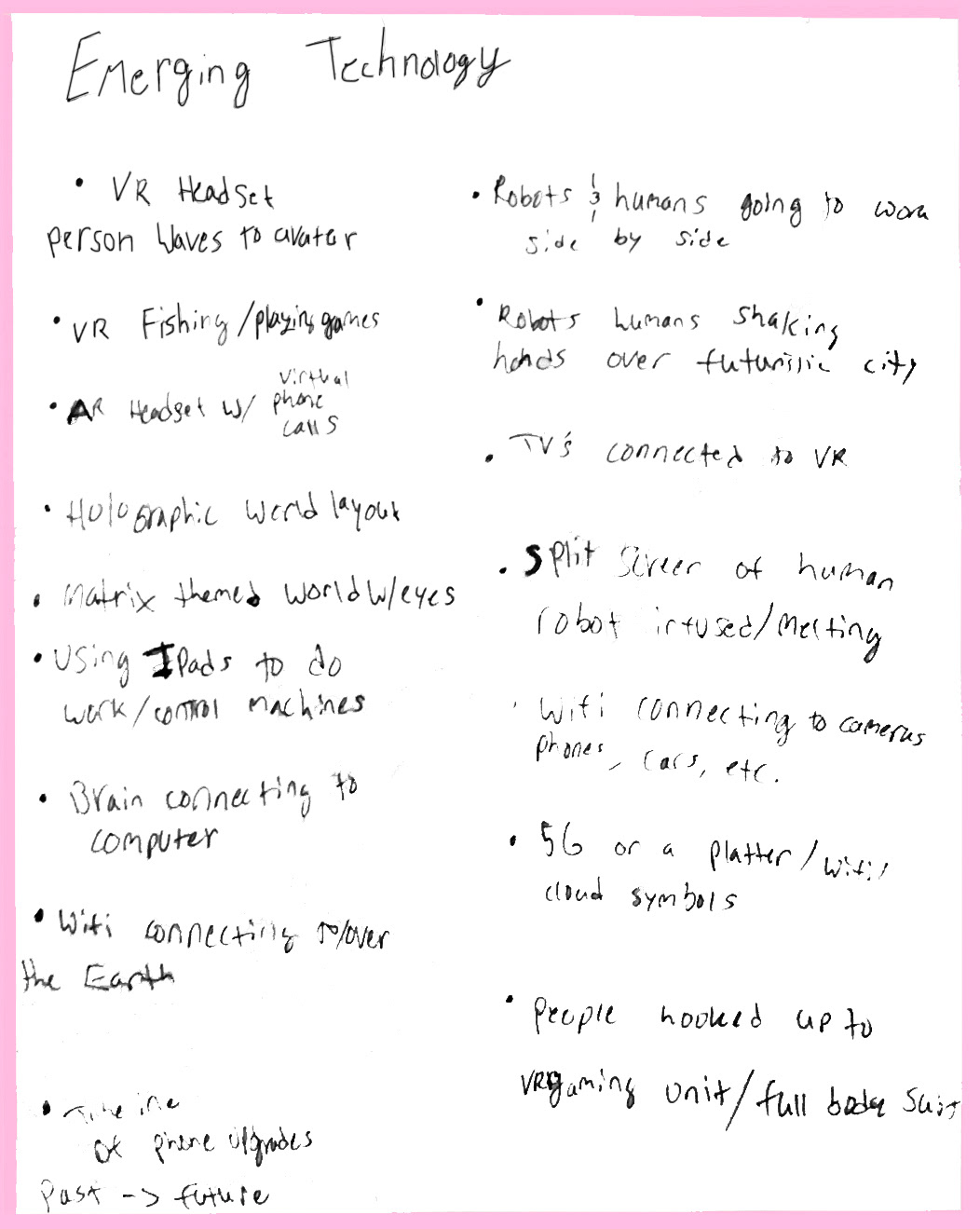 The first step was to take the prompt and start jotting down possible ideas, themes, and concepts to explore. I then took some of the best ideas I had and then went on to translate the ideas by creating thumbnails.