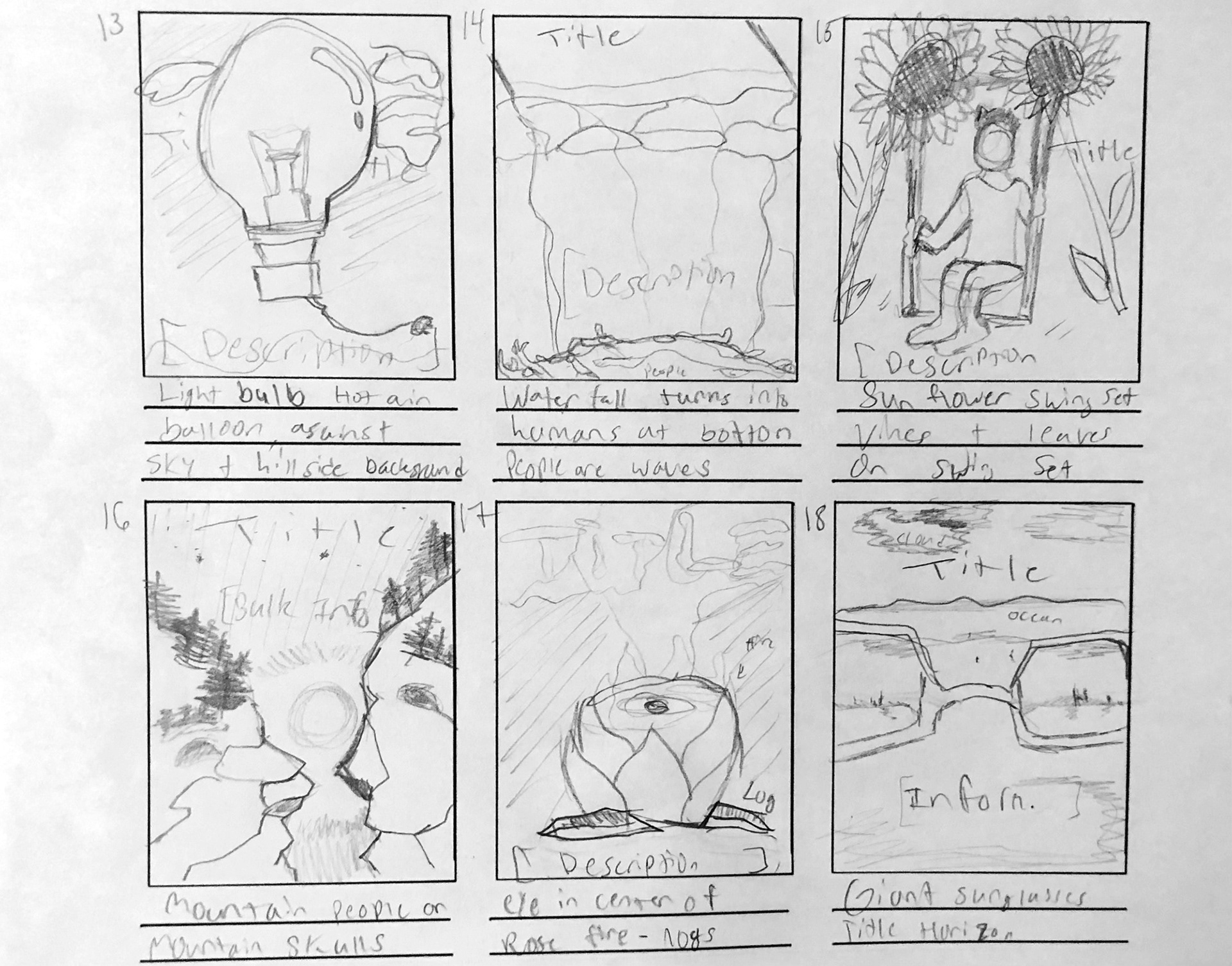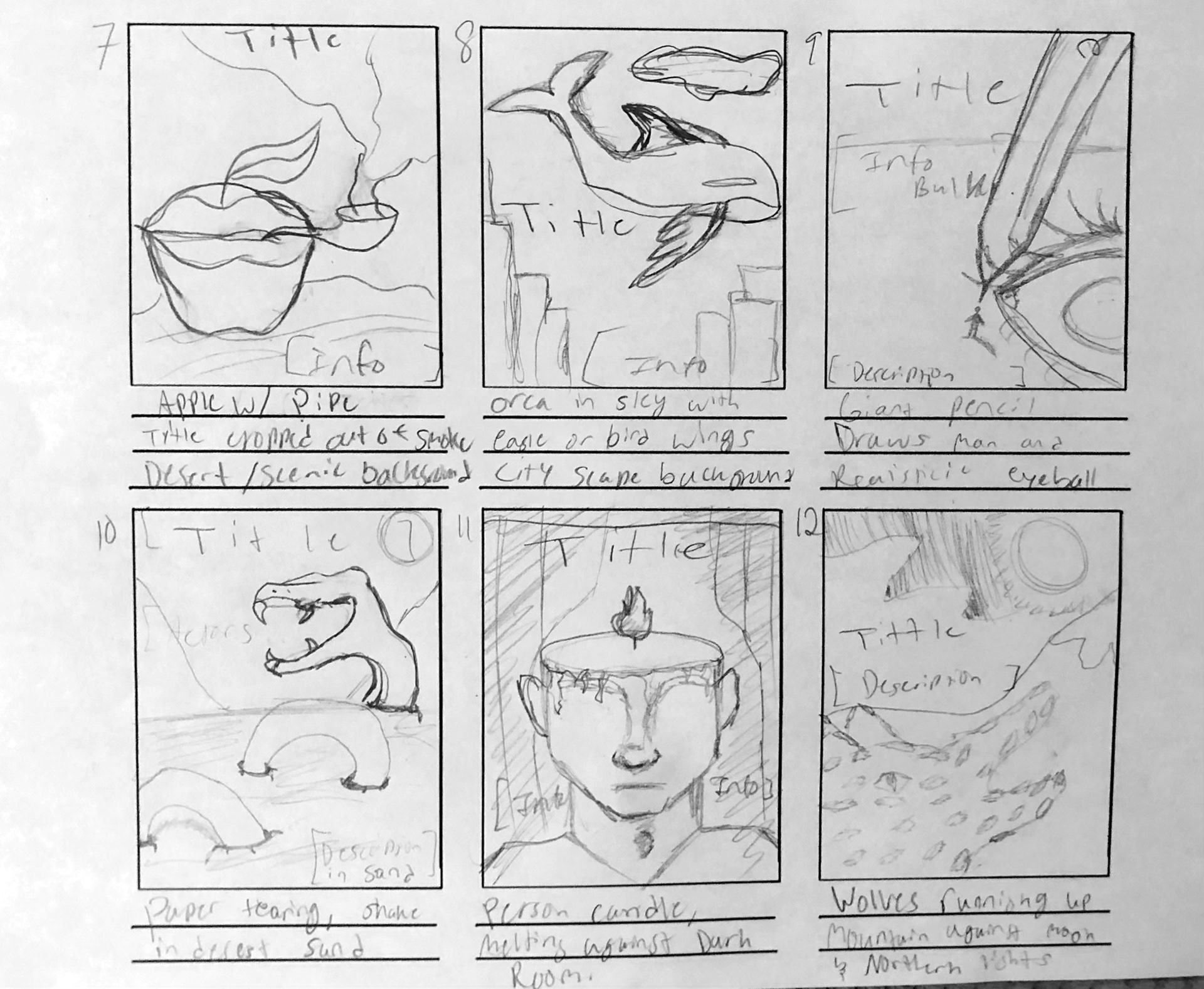 I had a lot of fun with this project and came up with twenty four thumbnail designs all depicting strange or bizarre ideas such as whales flying in the sky or a human candle. Ultimately, I decided on thumbnail ten.