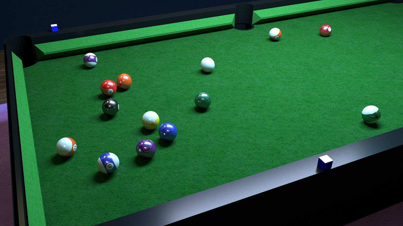 3D animated billiard scene with 3D animation, textures, lighting, and rendered all together.